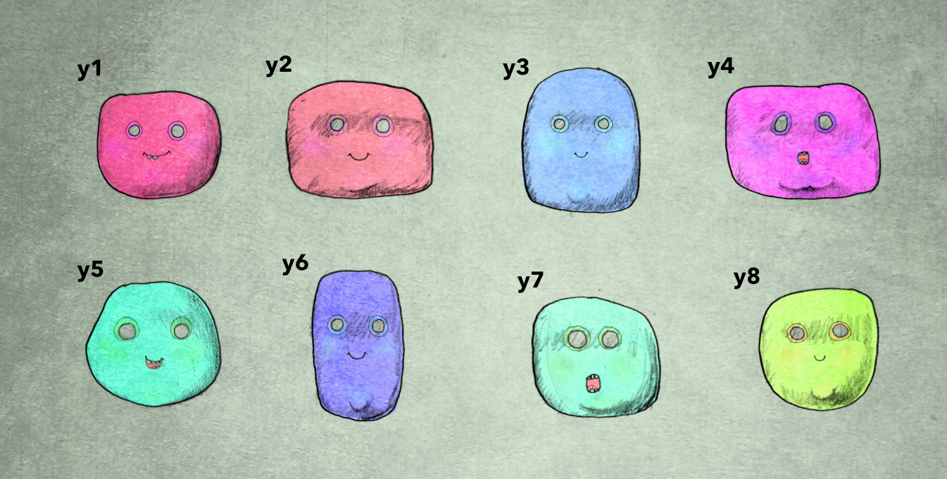 The multi-coloured heads you see in the image above is the first stage of this colouring process.  The colours you see here are far from the final colours (we will adjust those later).  For now, we are just colouring in.