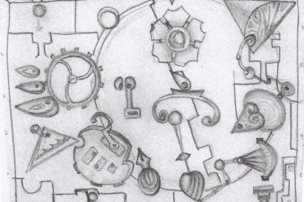So it does of course include some locks. Not quite your normal locks, oh no, this is a collection of intricately moving mechanisms that link and connect, latch and oscillate. It’s been fun working out the what and the how of it and I started by drawing out shapes that would move and nudge each other in an interesting way.